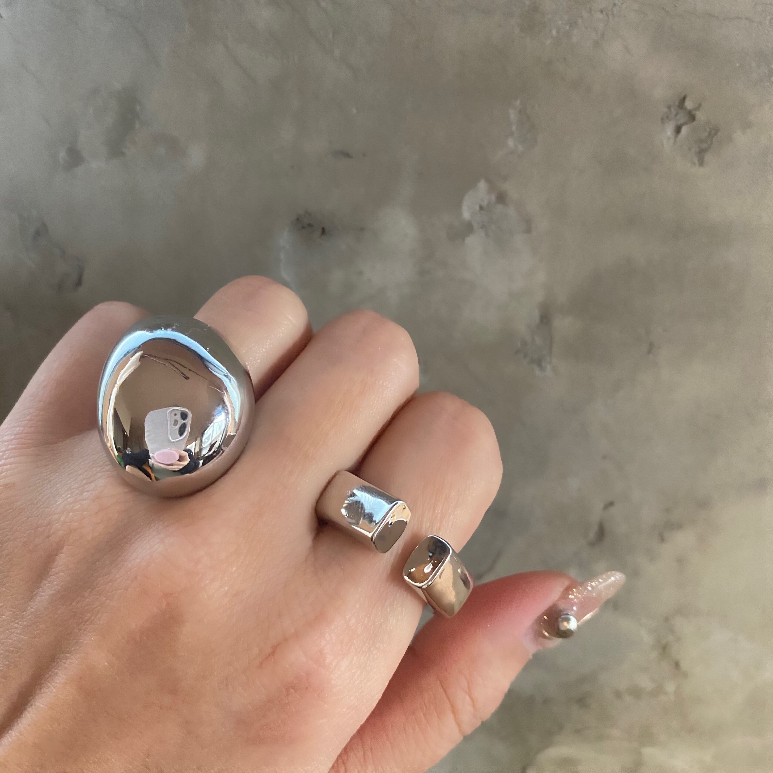 ●存在感たっぷりのシルバーカラーのぷっくりオーバルリングです