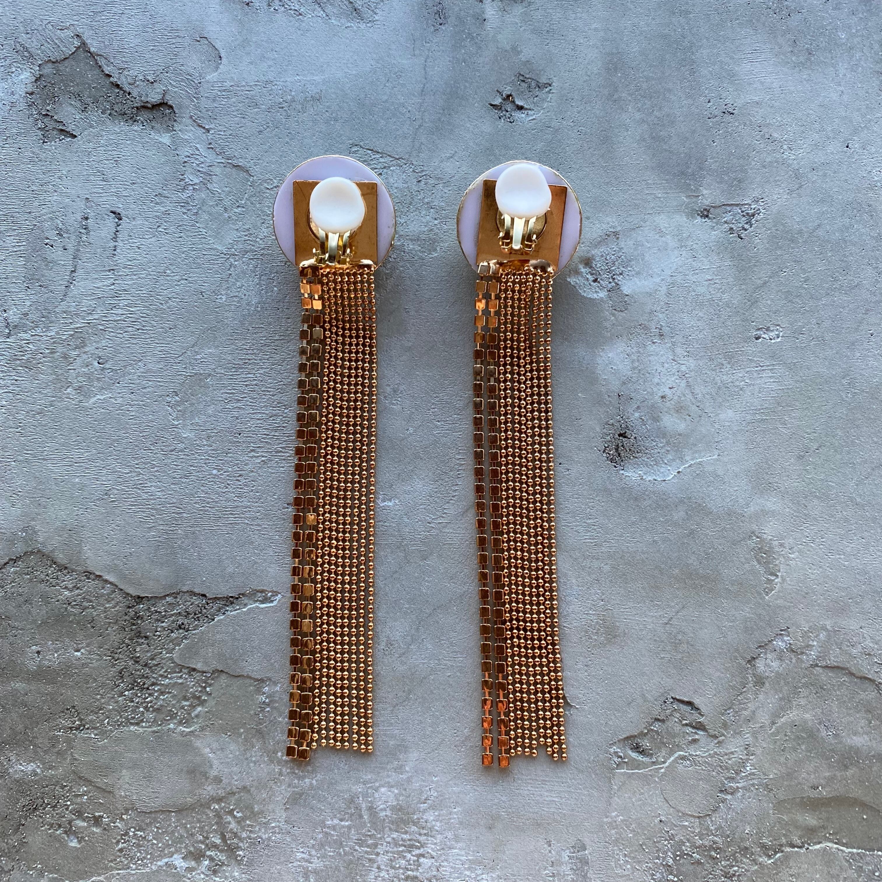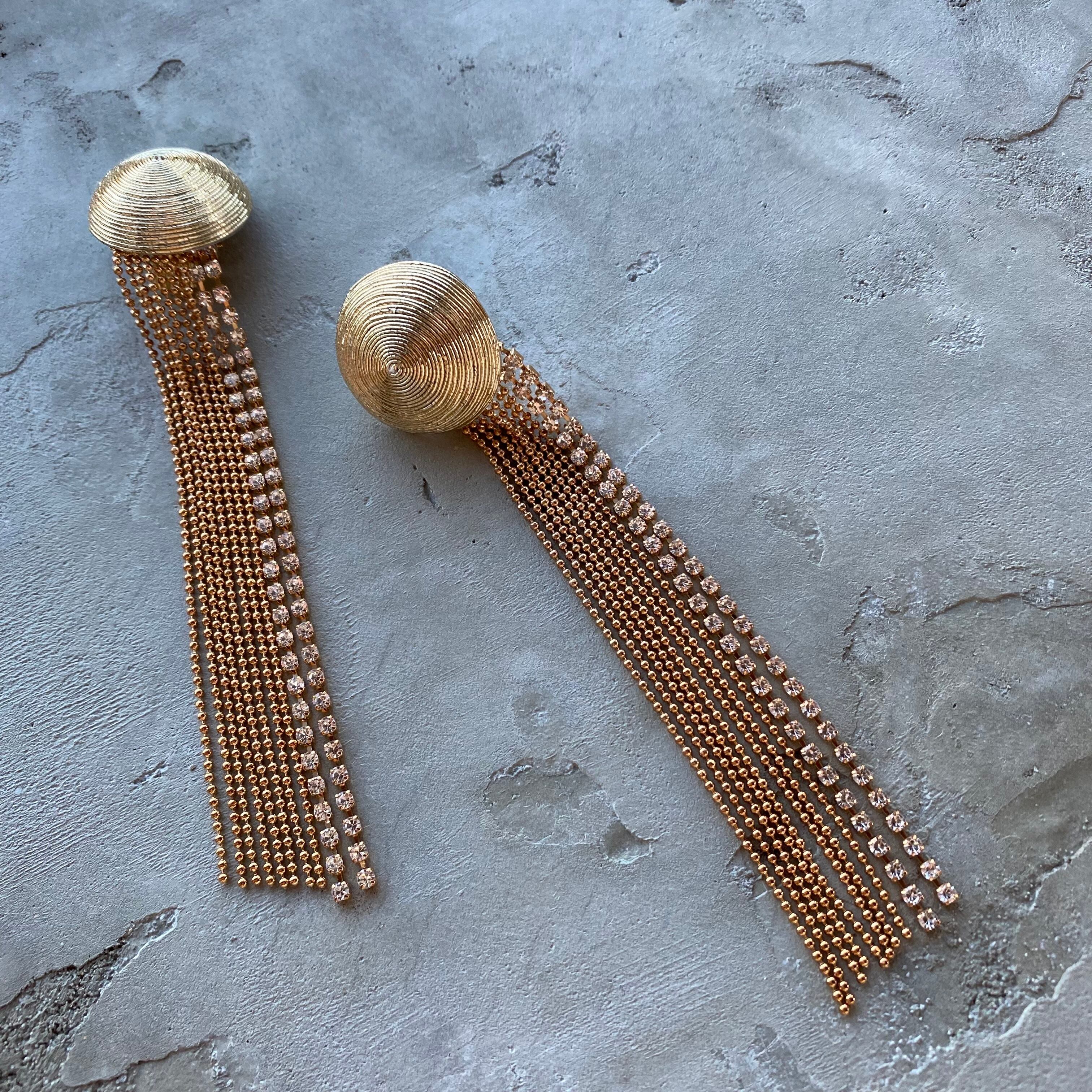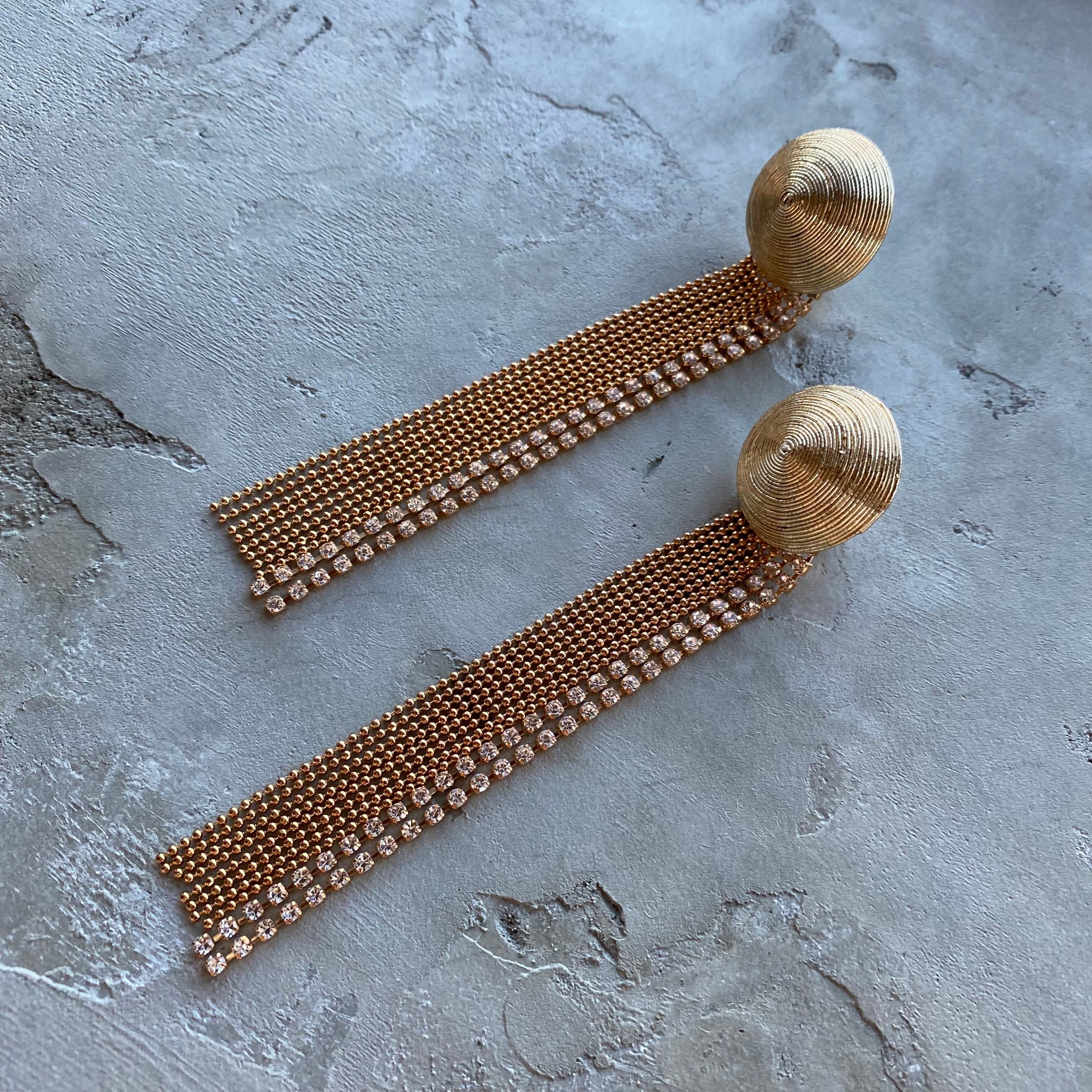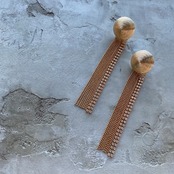 ●糸巻きカボションにロングラインストーンチェーンタッセルが揺れる華やかなデザインのイヤリング
