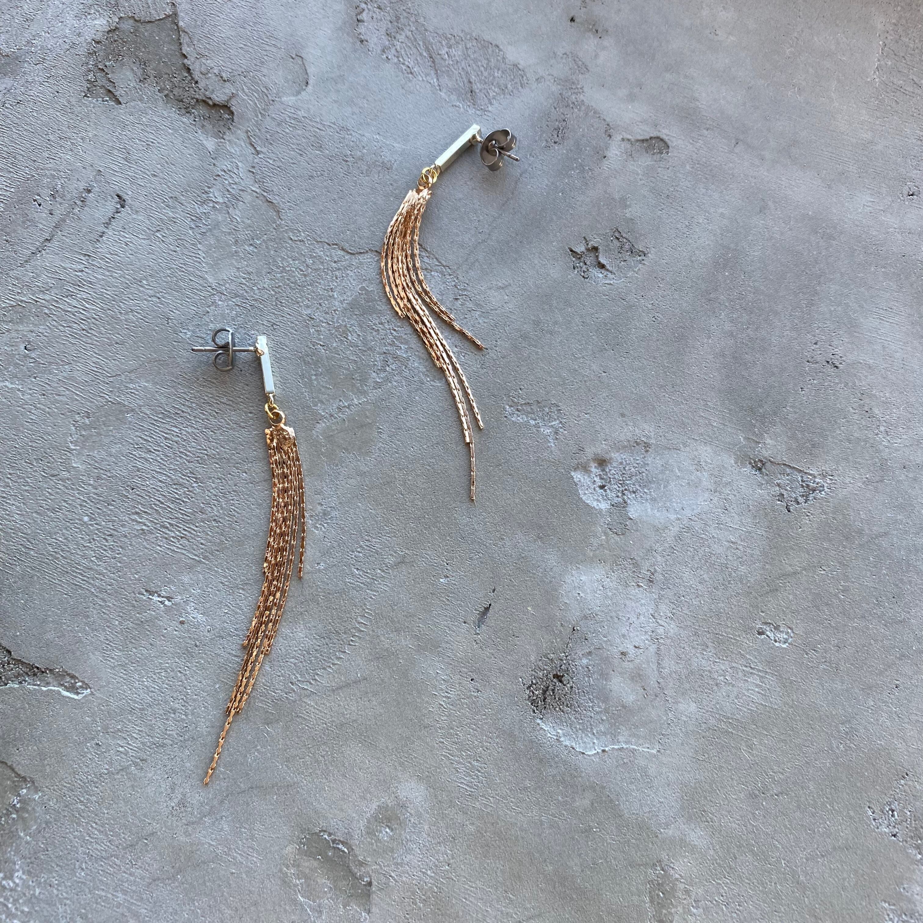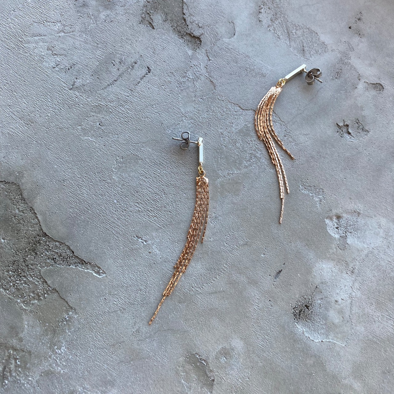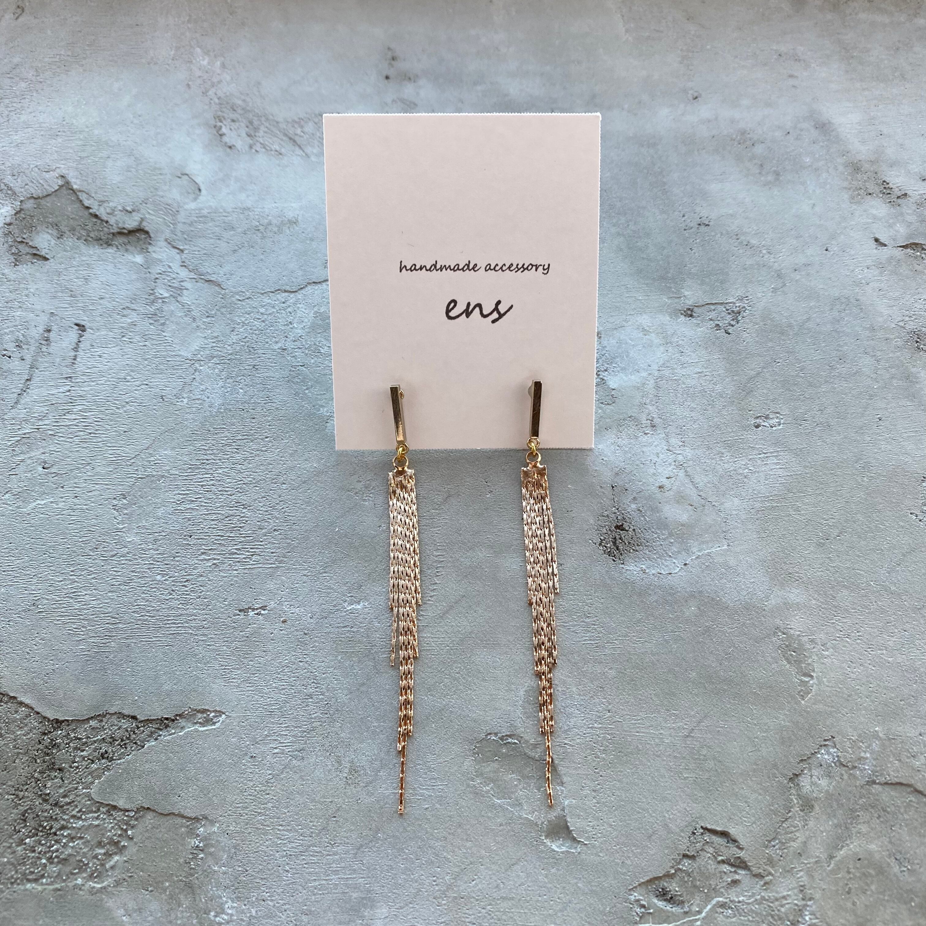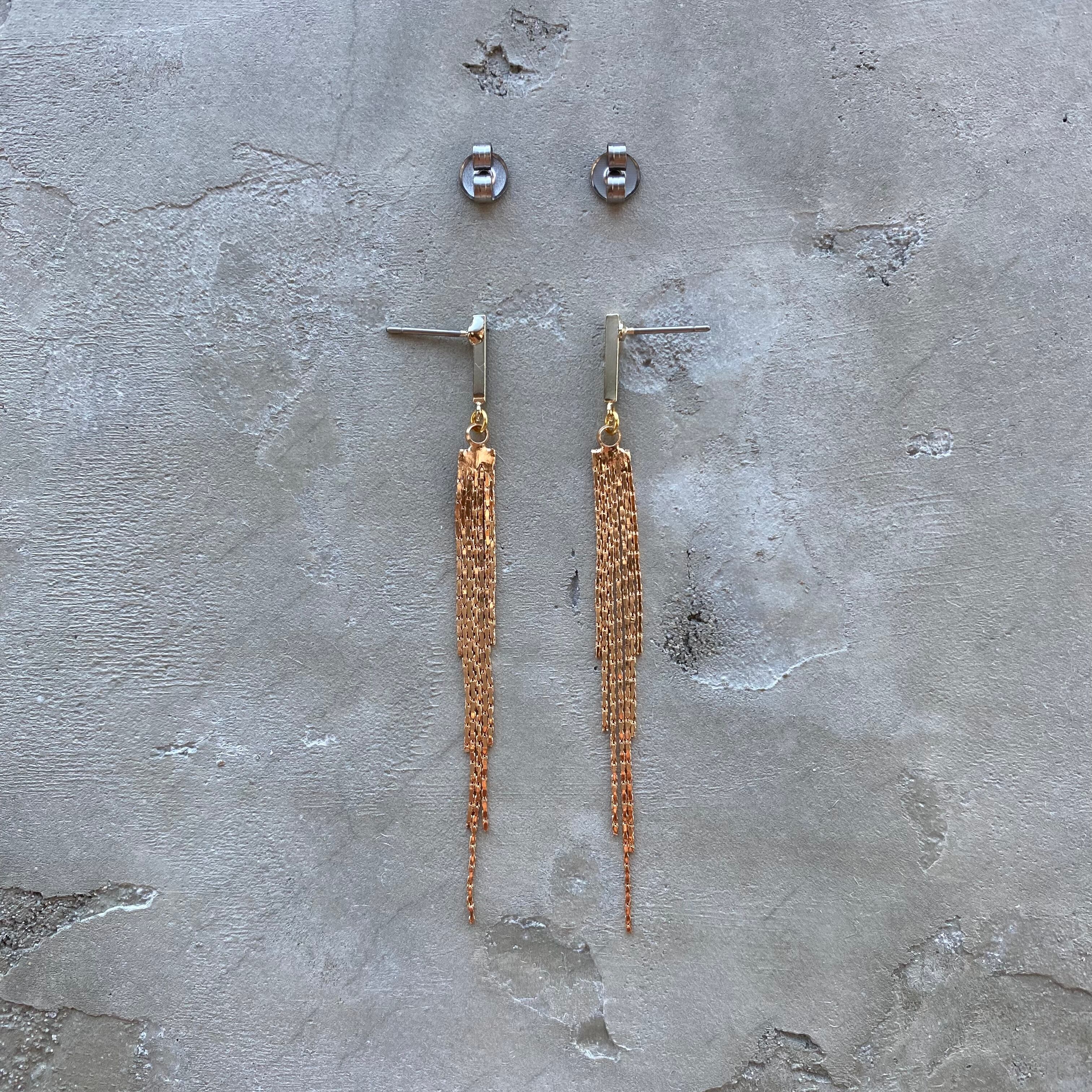 ●10×1.5mmのゴールドバーに約54mmのチェーンタッセルが上品に揺れるロングピアス