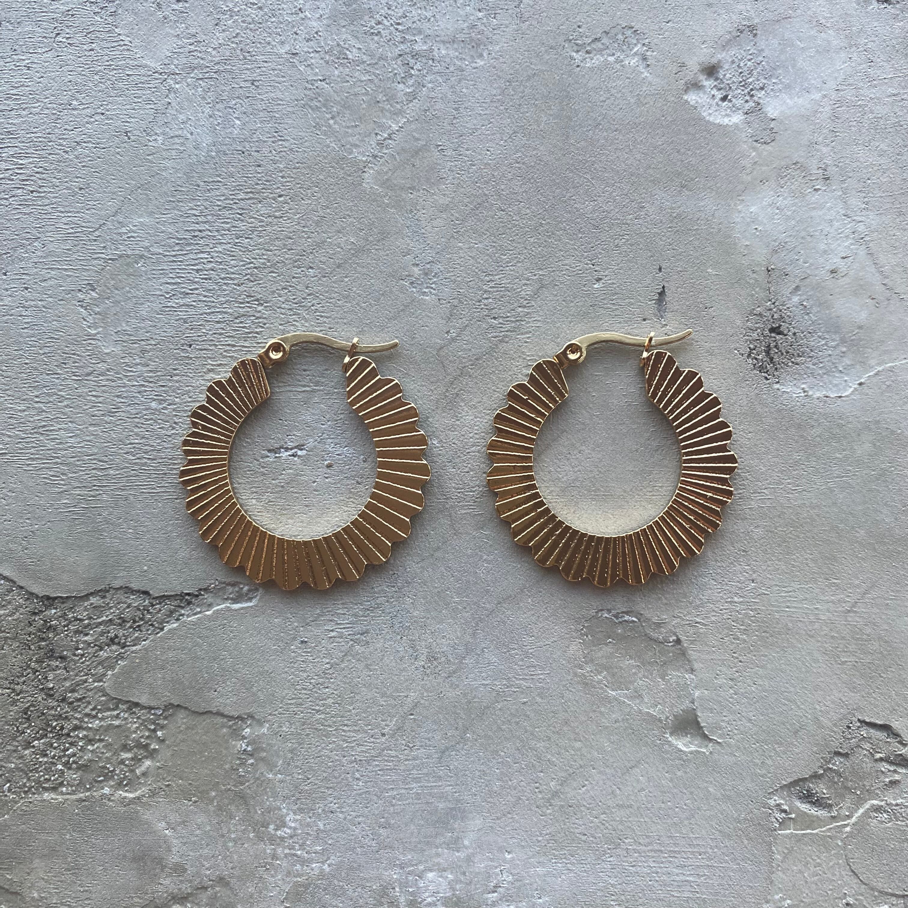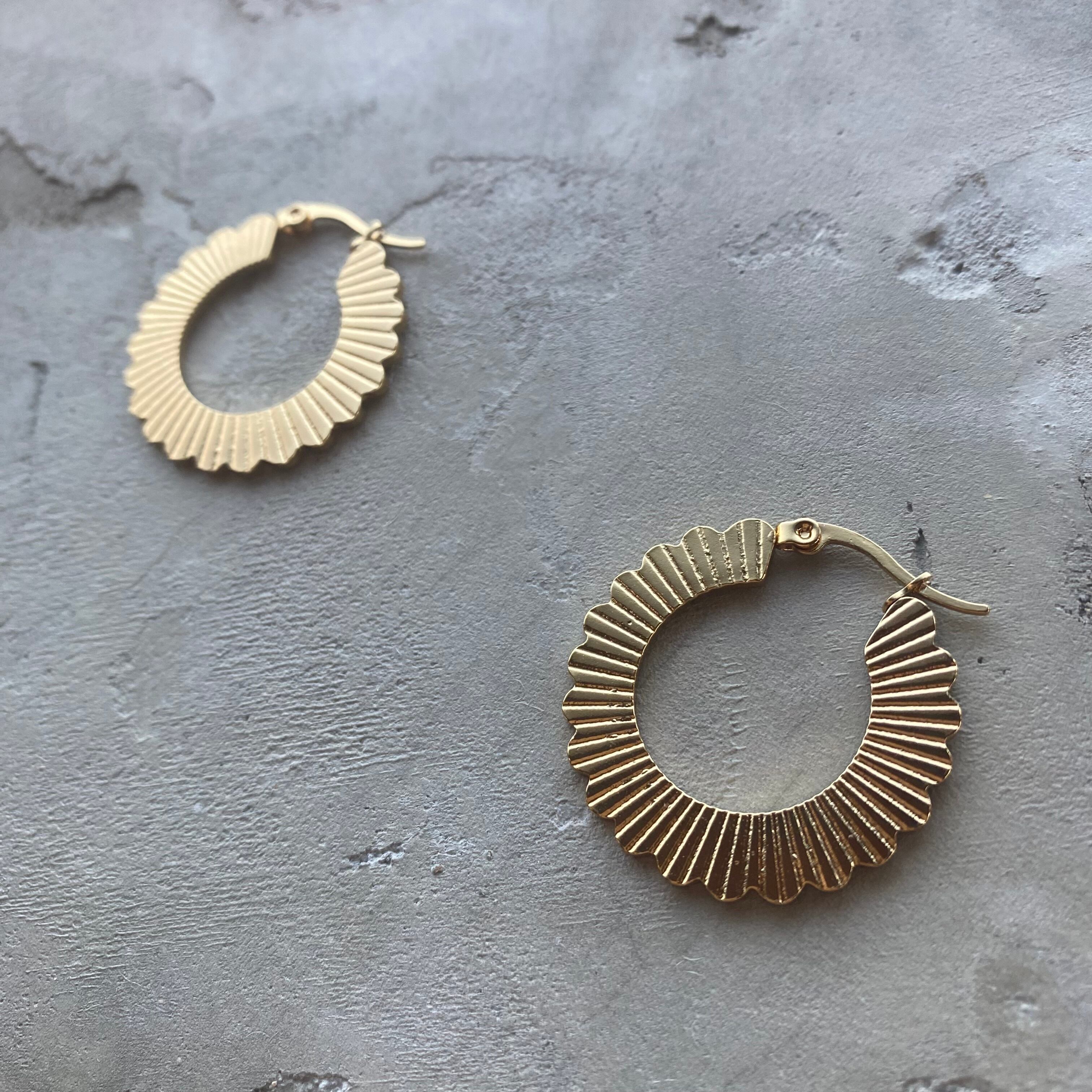 ●直径(外径)約30mmのデザインカットされたゴールドリングピアス