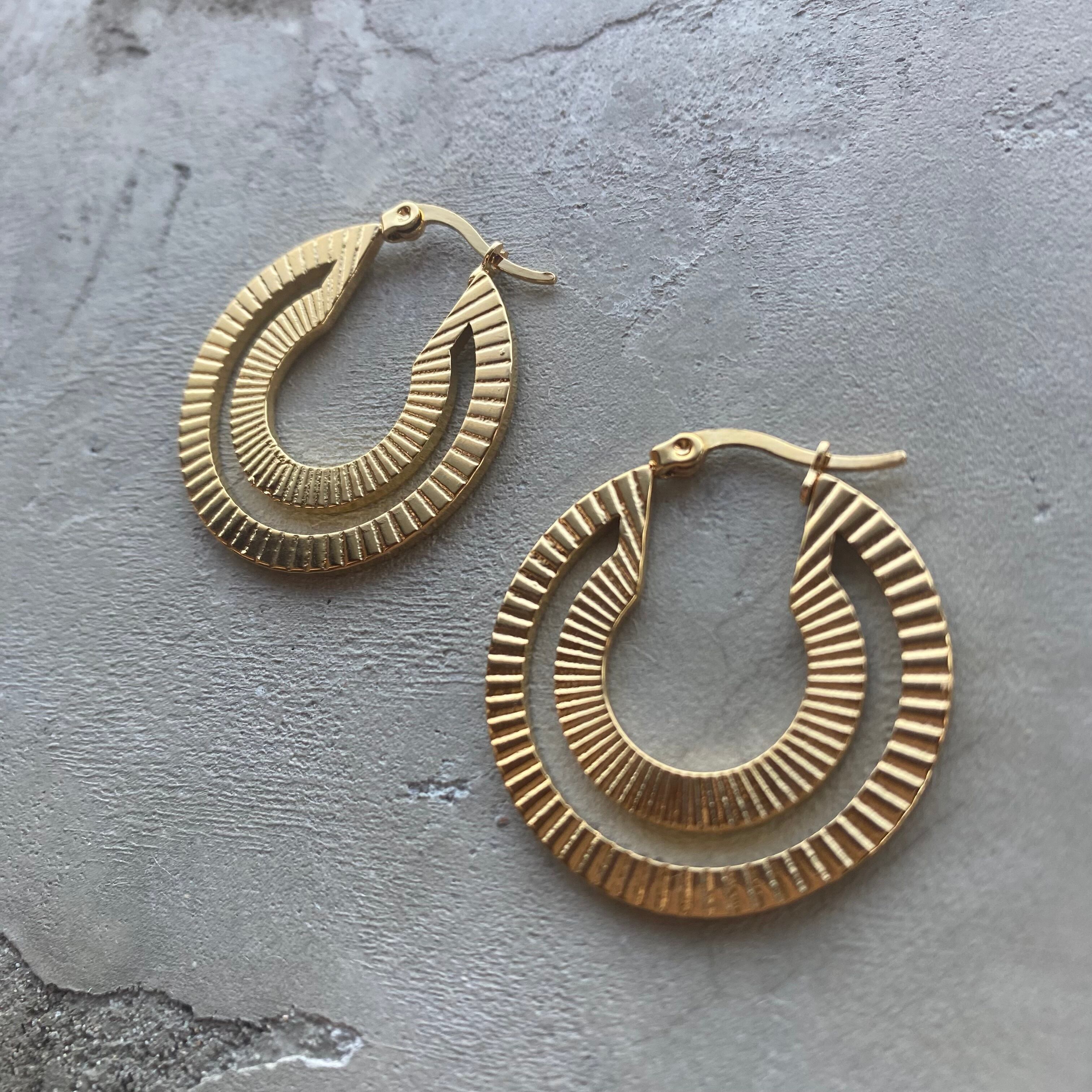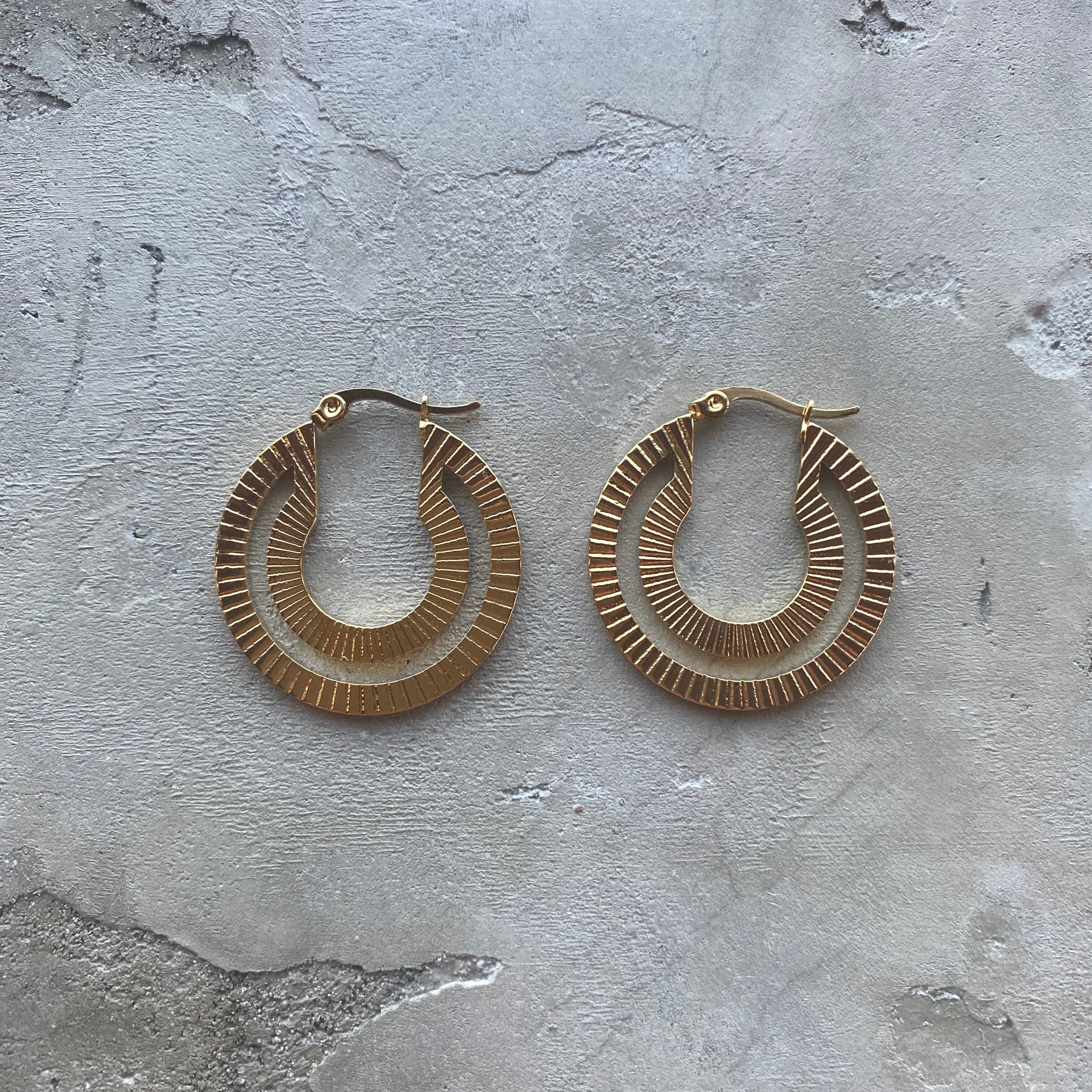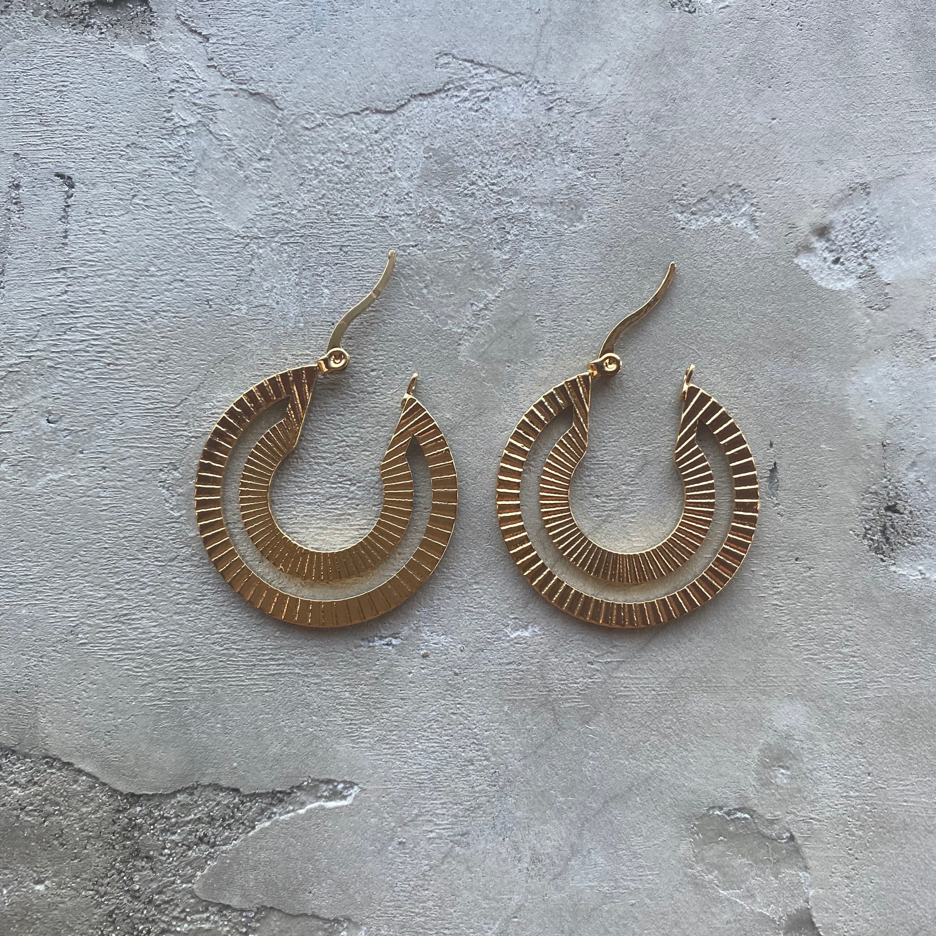 ●直径(外径)約30mmのデザインカットされたゴールドリングピアス